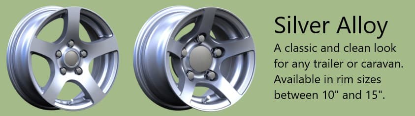 Alloy wheel rims are sometimes preferred on caravans or larger trailers due to their superior aesthetic appearance and better handling due to their reduced weight. Our alloy options are available in 10" - 15" wheel rim diameter sizes. They are made out of high quality aluminium and come with a limited 1 year manufacturers warranty. We have the most common wheel sizes and bolt configurations available to purchase online including: